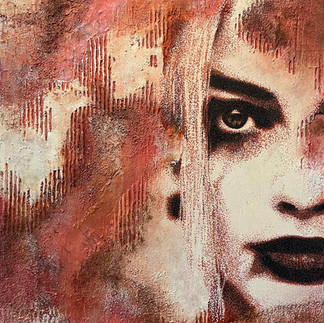 Afgelopen zomer had ik ook al wat geëxperimenteerd met het openwerken van golfkarton, ook die techniek wordt onderdeel van mijn canvas vol textuur. Hoe ik het ga doen is dus duidelijk, nu nog bedenken wat ik ga maken. Mijn idee is een grillige uitsnede van een portret van Margot Robbie in haar rol als Harley Quinn.